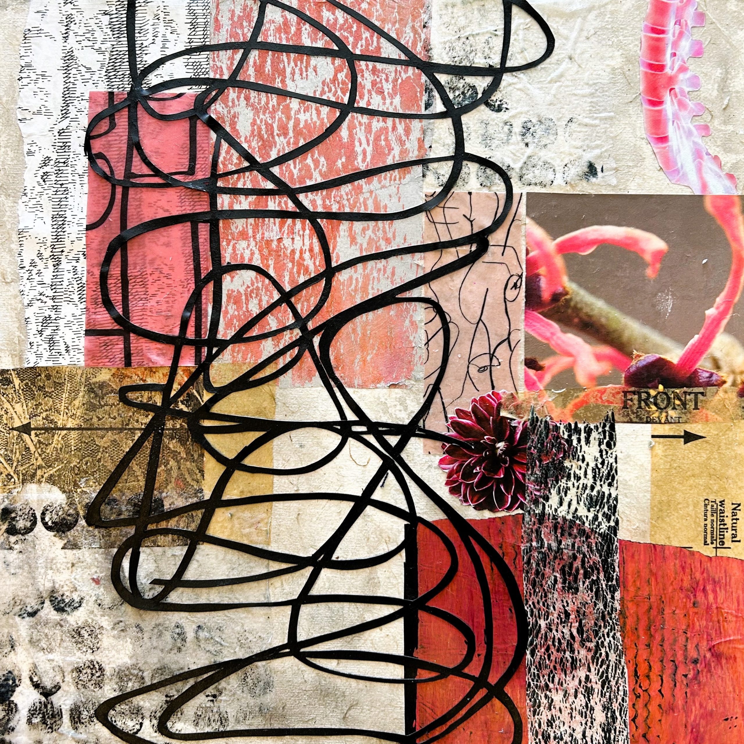 original collage with monoprint and papercut 40 x 40 x 5cm
